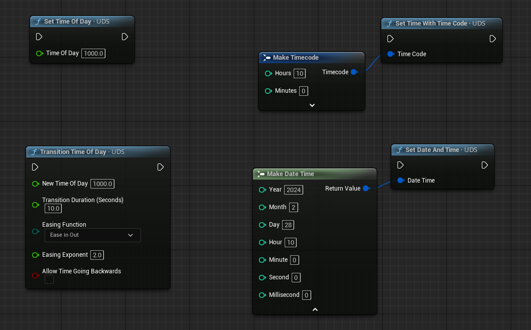 Time of Day and Date will be replicated in a multiplayer environment. (For info about weather state replication, see the UDW replication section below.)